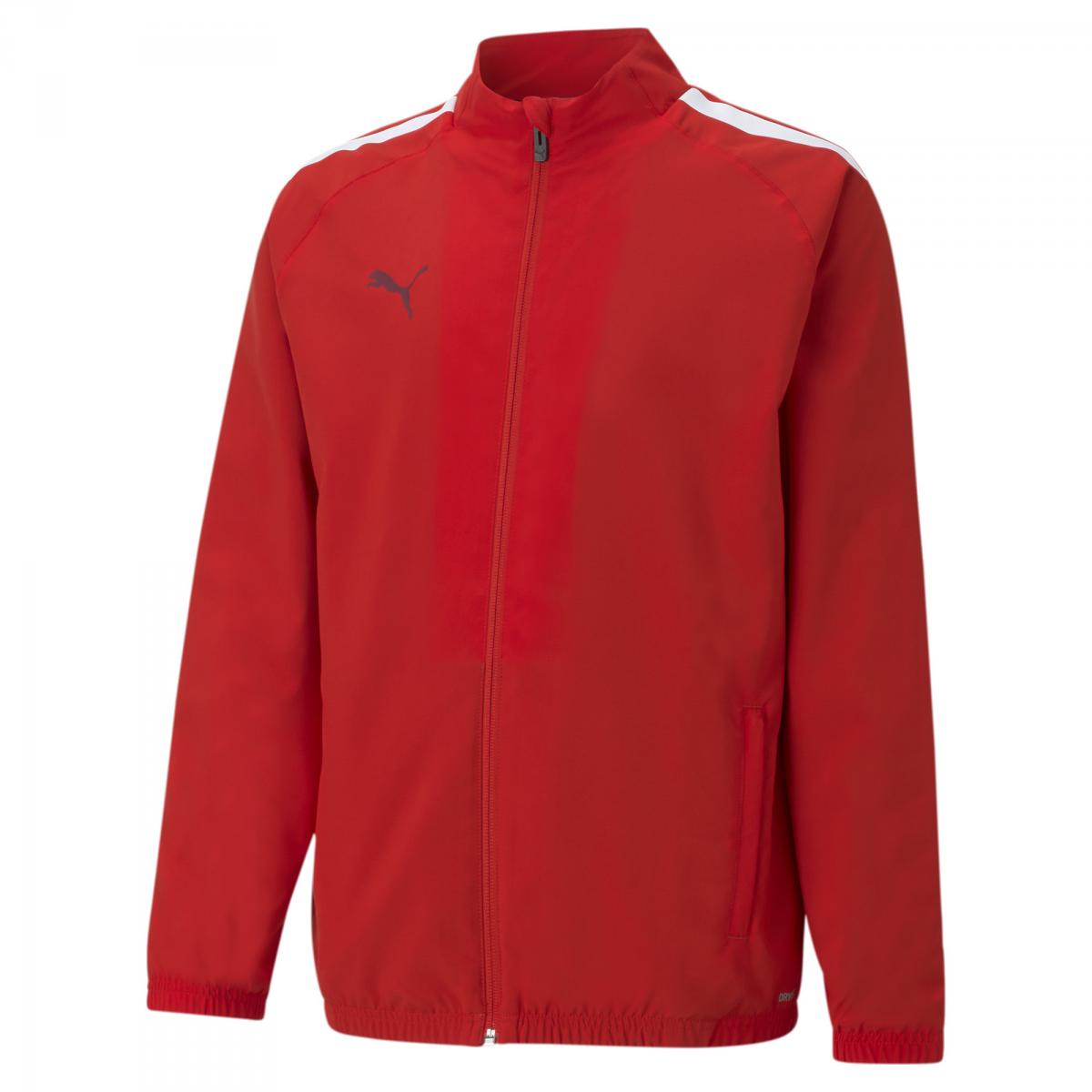Stehst du als Fan am Spielfeldrand oder wartest du gespannt auf deinen Einsatz? Ob Fan oder Spieler – in unserer teamLIGA Sideline Fußballjacke legst du immer einen sportlichen Auftritt hin. Das atmungsaktive Mesh innen, die Schultereinsätze mit PUMA Formstrip und das kultige PUMA Cat Logo vorne machen aus dieser Jacke ein Performance-Piece aus Recyclingmaterial für noch mehr Nachhaltigkeit.